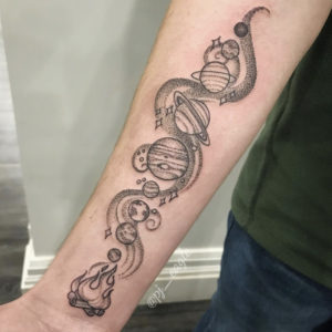 There are so many incredibly talented tattoo artists out there and it’s important to ensure that the one you pick to ink up your bod is aligned with your aesthetic and has the skills to execute. We’re obviously huge on the moon and the astros, so we decided to round up some of our favourite artists in Canada. If you’re looking to get that perfect universe tat, check out these incredible artists for inspo.
